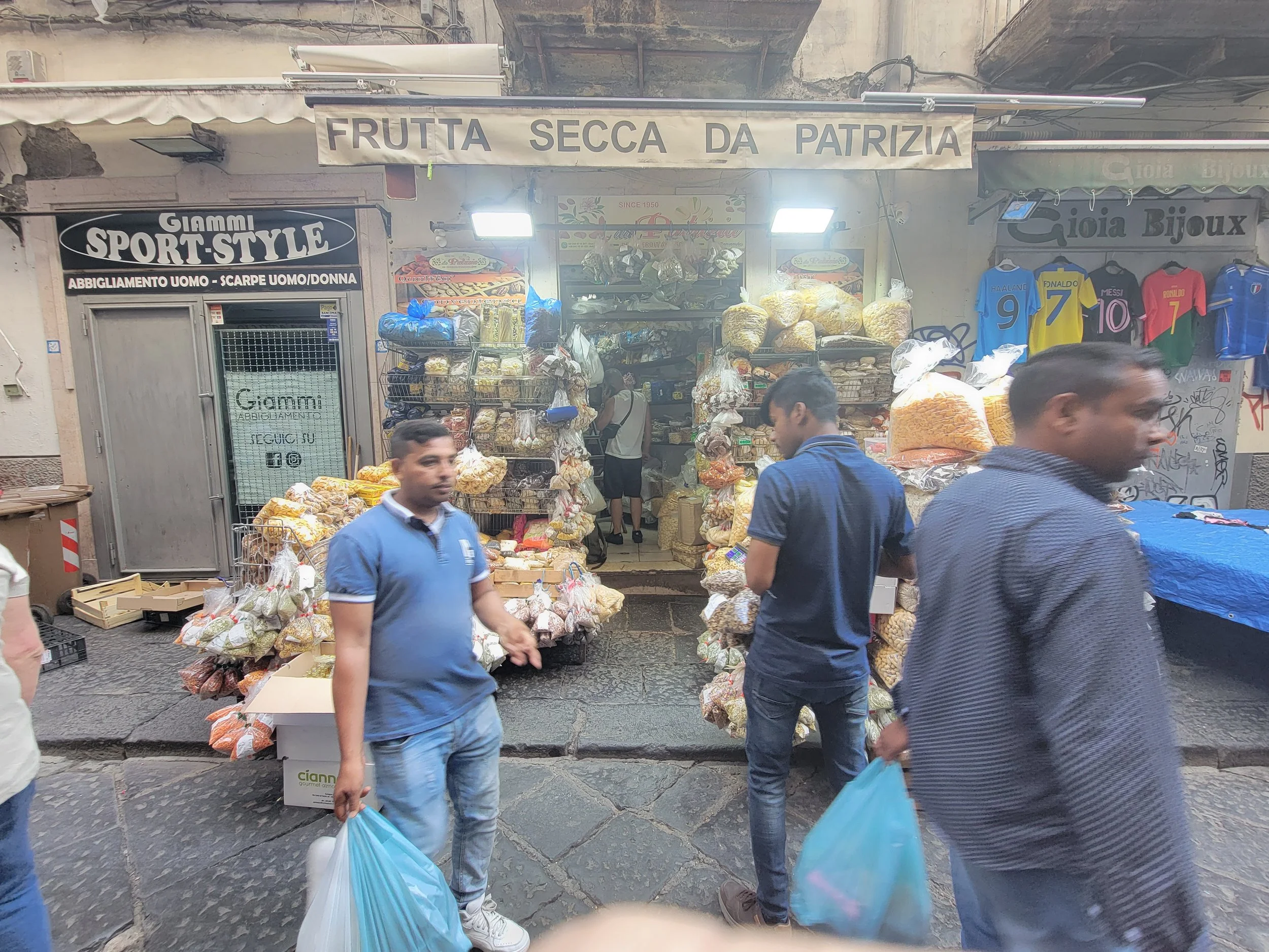 During our time in Naples, we couldn't miss the opportunity to explore the vibrant open-air market. As we strolled through the bustling lanes, we were immediately immersed in a sensory feast. The market was a treasure trove of sights and smells, reminiscent of the vibrant markets of my childhood in Philadelphia's 9th Street. From the enticing fish vendors displaying their fresh catches to the colorful stalls offering a variety of dried fruits and vegetables, the market truly offered a cornucopia of culinary delights.